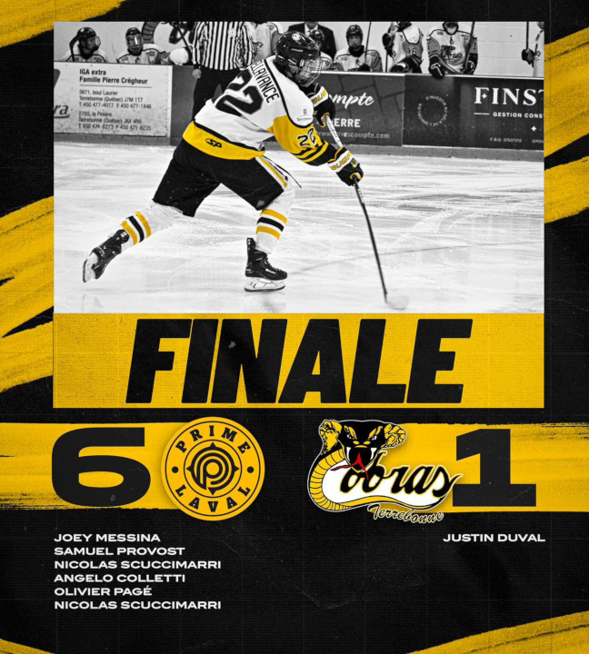 Malgré une prestation engagée et le soutien d’un public fidèle, les Cobras de Terrebonne se sont inclinés 6 à 1 face au Prime de Laval, vendredi soir à la Cité du sport.